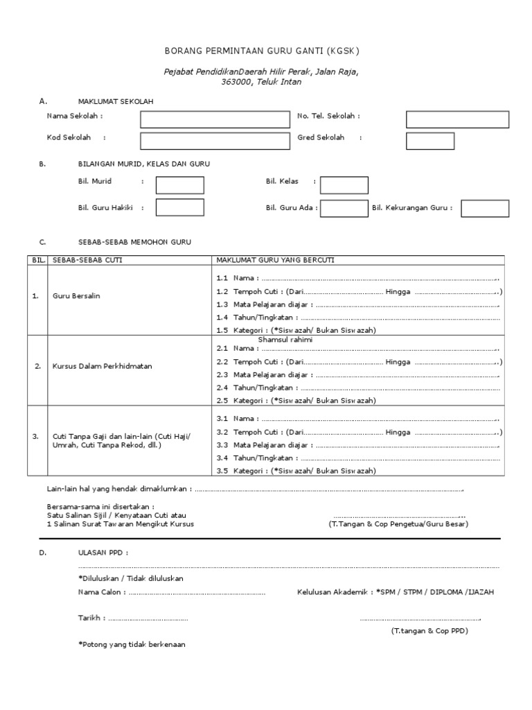 Borang Permintaan Guru Ganti Pdf