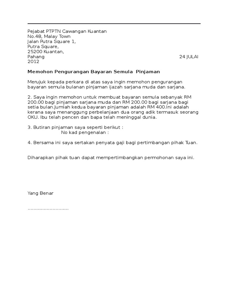 Surat Rayuan Pengurangan Bayaran Ptptn Pdf